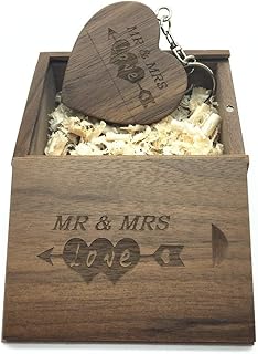 Clé USB en bois LXSINO avec gravure au laser Mr & Mrs Design - Pilotes clé USB en forme de cœur de 64 Go en bois avec boîtier correspondant pour cadeau de fantaisie (noyer 64g)