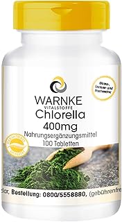 Warnke Vitalstoffe Chlorella 400 mg - 100 comprimés - Végan - Chlorella pyrenoidosa - Riche en chlorophylle et en vitamine B12