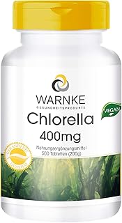 Warnke Vitalstoffe Chlorella 400 mg - 500 comprimés - Végétarien - Chlorella pyrenoidosa - Riche en chlorophylle et en vitamine B12