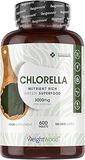 Chlorella Pure - 600 Comprimés Vegan - Énergie, Satiété, Force | Poudre de Chlorella 3000 mg par Portion - Chlorelle Super Aliment Vert - Complément Alimentaire 100% Naturel WeightWorld