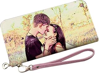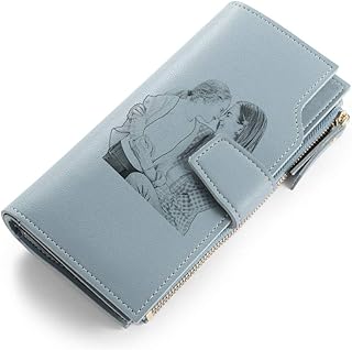 Portefeuille Homme Femme personnalisé Photo Portefeuilles en Cuir personnalisés pour Homme Portefeuilles Femmes avec Gravure Cadeau d'anniversaire pour Femme Mari père (Section Longue, Bleu Clair)