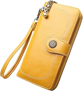 Portefeuille Femme Grande Capacite Porte Feuille Compagnon Femme, Grand Porte Monnaie Cuir Femmes avec Chequier 11 Emplacements Cartes Portefeuilles Cuir Femme XXL (Jaune)