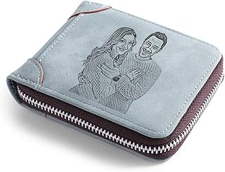 Portefeuille Homme Femme personnalisé Photo Portefeuilles en Cuir personnalisés pour Homme Portefeuilles Femmes avec Gravure Cadeau d'anniversaire pour Femme Mari père (Section Courte, Bleu Clair)