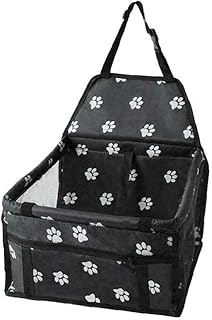 Maxjaa Siège d'auto pour Chien, Chien sièges d'auto pour Petits Chiens, Portable Pet Booster Car Seat imperméable et Pliable Puppy Car Seat (Noir avec Empreintes de Pattes)