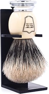Parker Safety Razor Fait à la main Long Loft 100% Pure Badger Blaireau avec et poignée chromée - Pinceau support inclus Ivoire