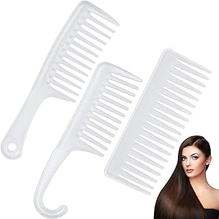 3 Pièces Peigne à Dents Larges, Peigne Démêlant sans Poignée Peigne à Dents Démêlant Large Peigne de Shampooing de Salon avec Crochet pour Cheveux Bouclés Longs Droits Humides (Blanc)