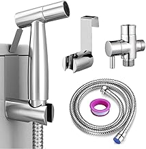 Pulvérisateur de toilettes pour bidet et de toilettes en acier inoxydable pour bidet - Kit de pulvérisateur de bidet - Facile à installer Avec tuyau de douche à ressort et crochet de 1,5 m