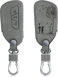 kwmobile Accessoire Clef de Voiture Compatible avec VW Golf 8 3-Bouton - Coque de Clé de Voiture en Nubuck - Magnolias Gris