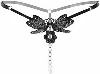 Solike Femmes Sexy Tongs Perle Taille Basse sans Couture Élasticité Transparent Taille Réglable G-Strings Tangas Érotique Panty Slips sous-vêtements Culotte